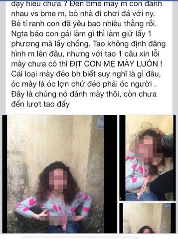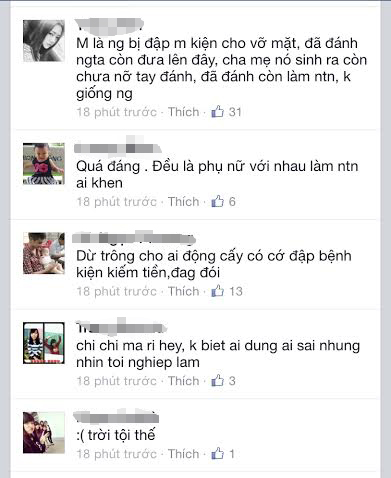 Facebook có tên là Kiều Hoa đã chụp lại một số hình ảnh cô gái bị đánh để cảnh báo cộng đồng. Kiều Hoa cho rằng, cô gái bị đánh là do sống buông thả, lên chửi bới trên facebook nên xứng đáng dạy cho bài học. Một số cư dân mạng khác cũng đem ra những lời bình luận ác ý.